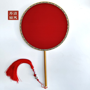 真丝刺绣扇红色空白团扇 绣禾扇手工DIY法绣空白扇拍照道具 婚扇