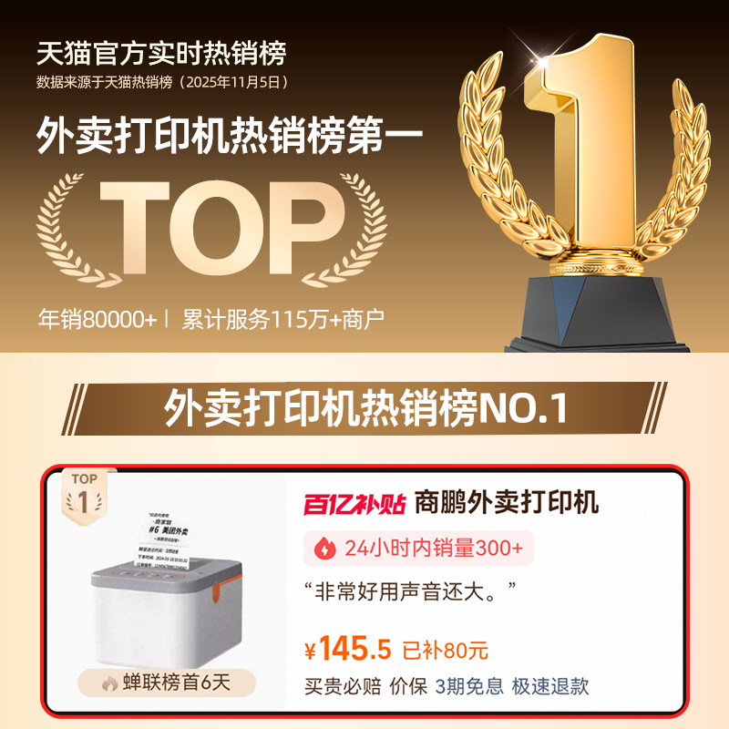 商鹏美团饿了么京东外卖打印机秒送商用wifi全自动接单打单蓝牙热敏小票打印机4G云餐饮订单打单闪购专用一体