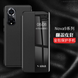 适用于华为nova9手机壳翻盖皮套nova9pro手机套hinova9se素皮保护套n9por男女新款 全包nove10防摔nova8外壳