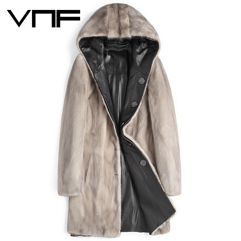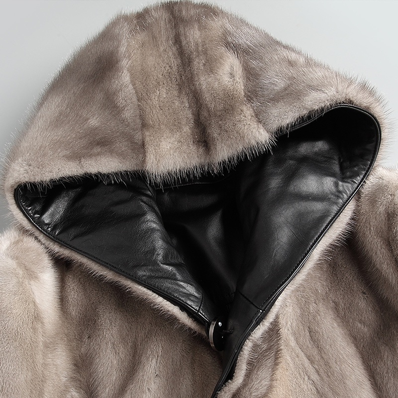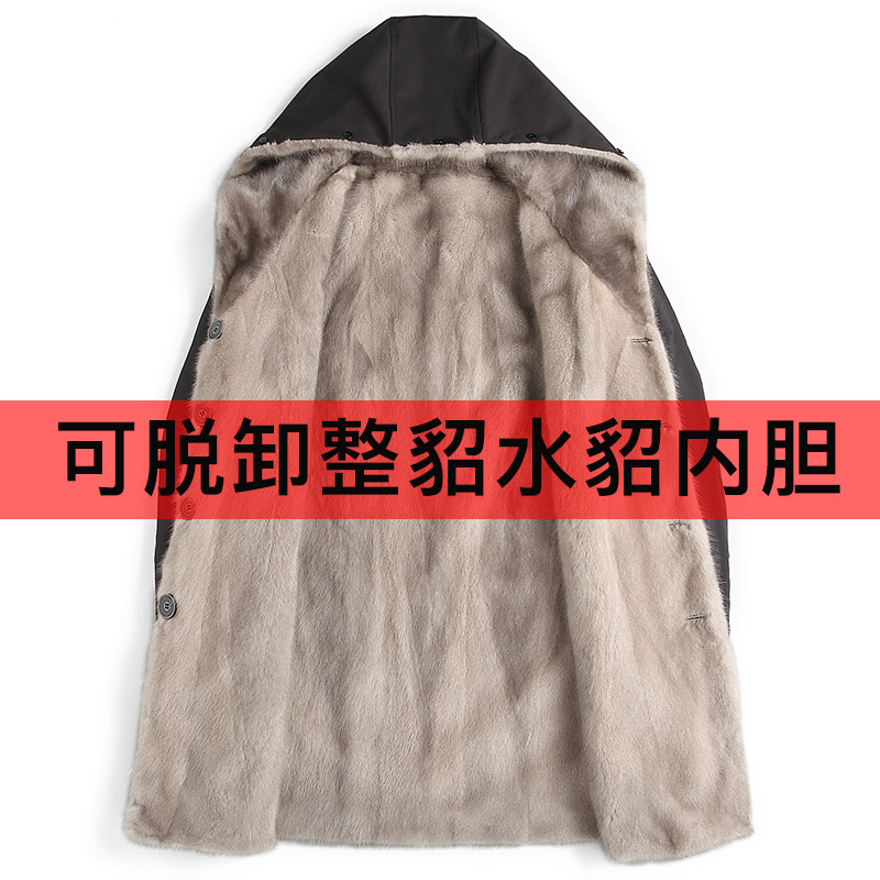 海宁皮草男头层牛皮整貂水貂皮毛一体双面穿真皮皮衣连帽貂皮大衣