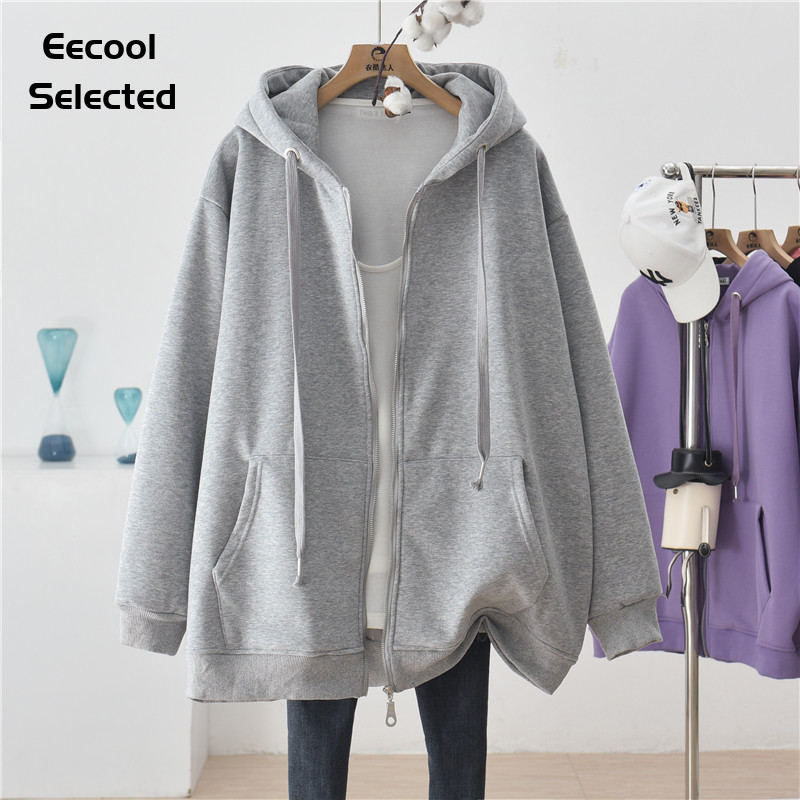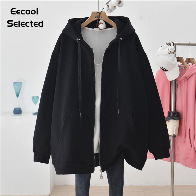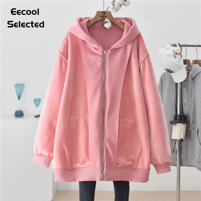 冬季 2024年新款 女士卫衣过臀中长 宽松韩版 加绒加厚外套女秋冬大码