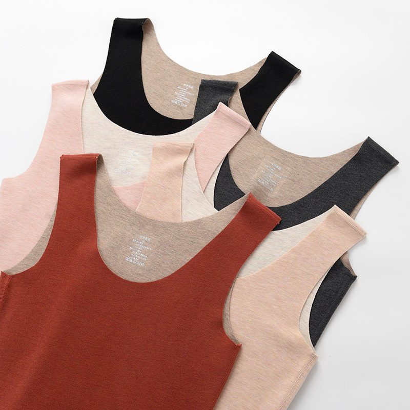 秋冬季 无痕德绒保暖背心女士圆领内搭加绒加厚吊带贴身内穿打底衫