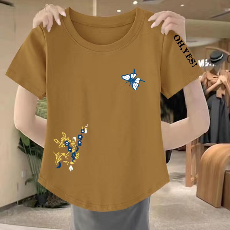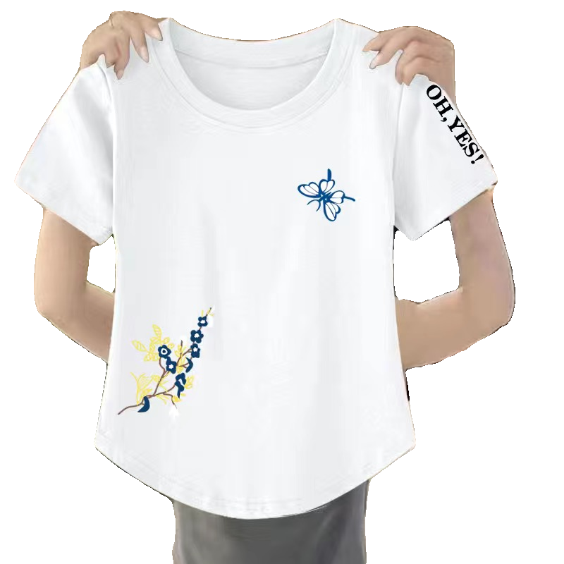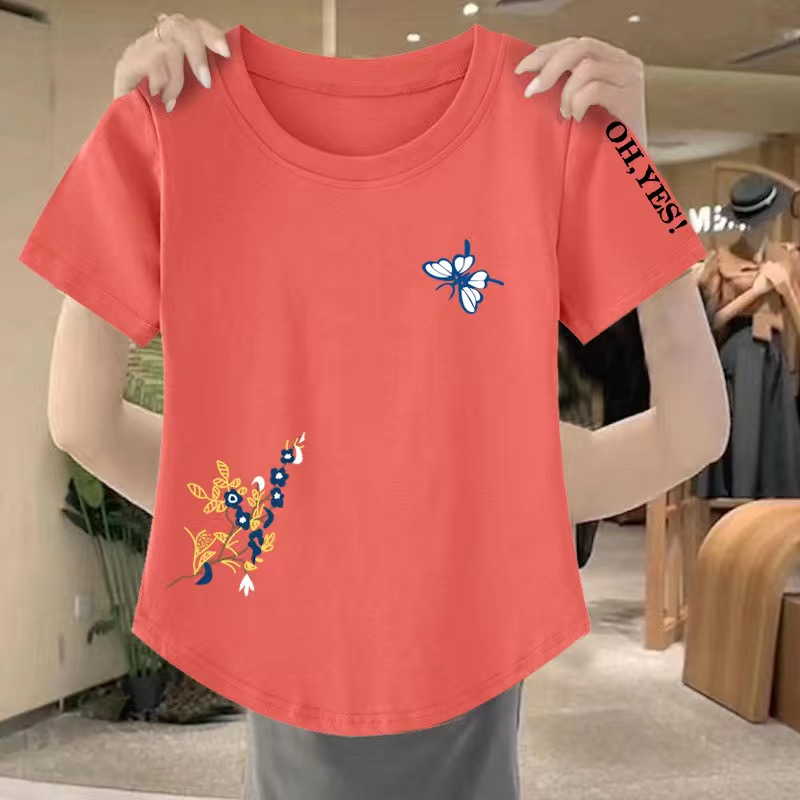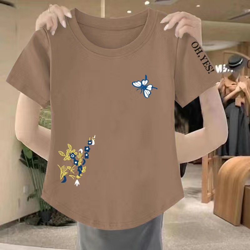 t恤女夏季 印花不规则体恤衫 新款 宽松显瘦圆领百搭时尚 女 韩版 短袖
