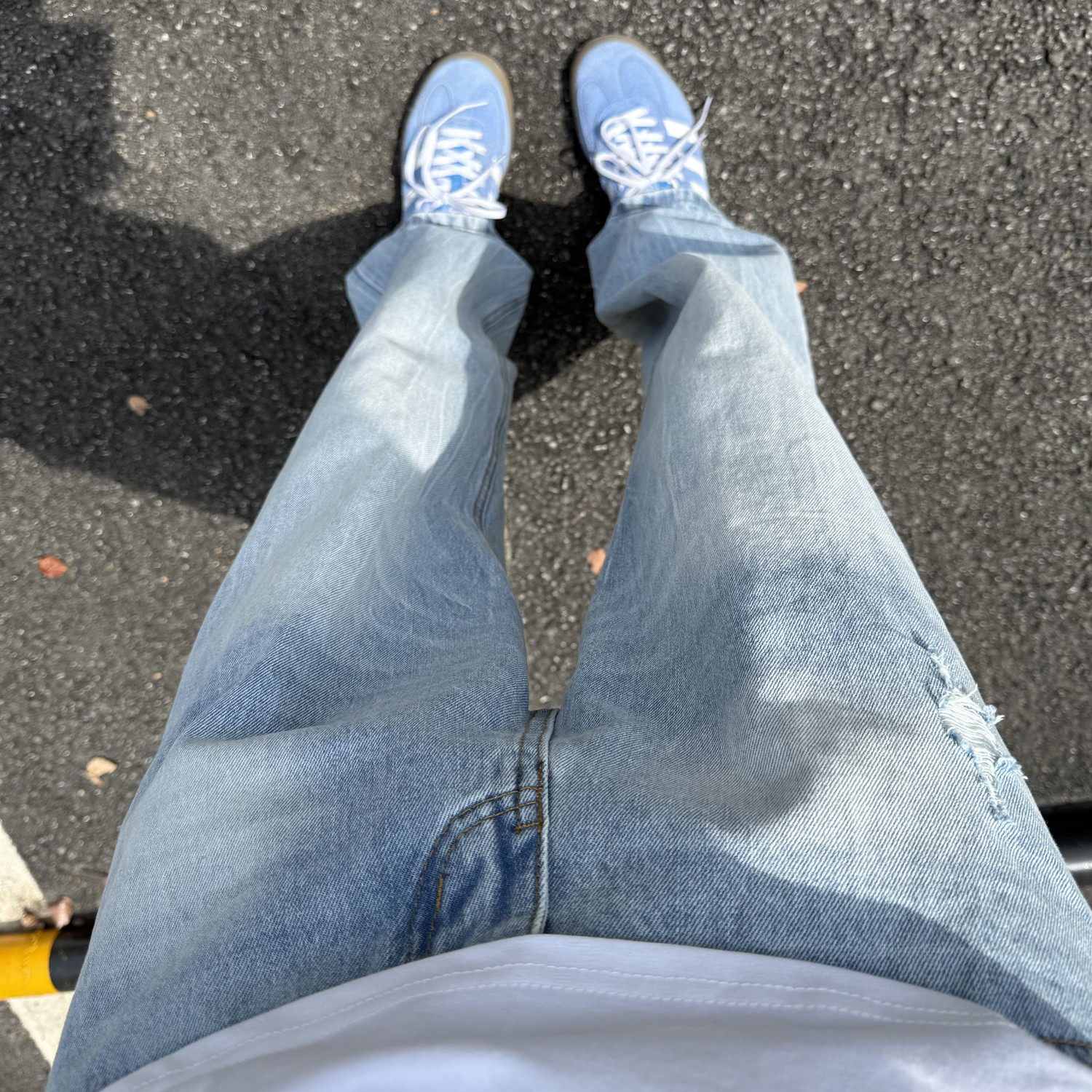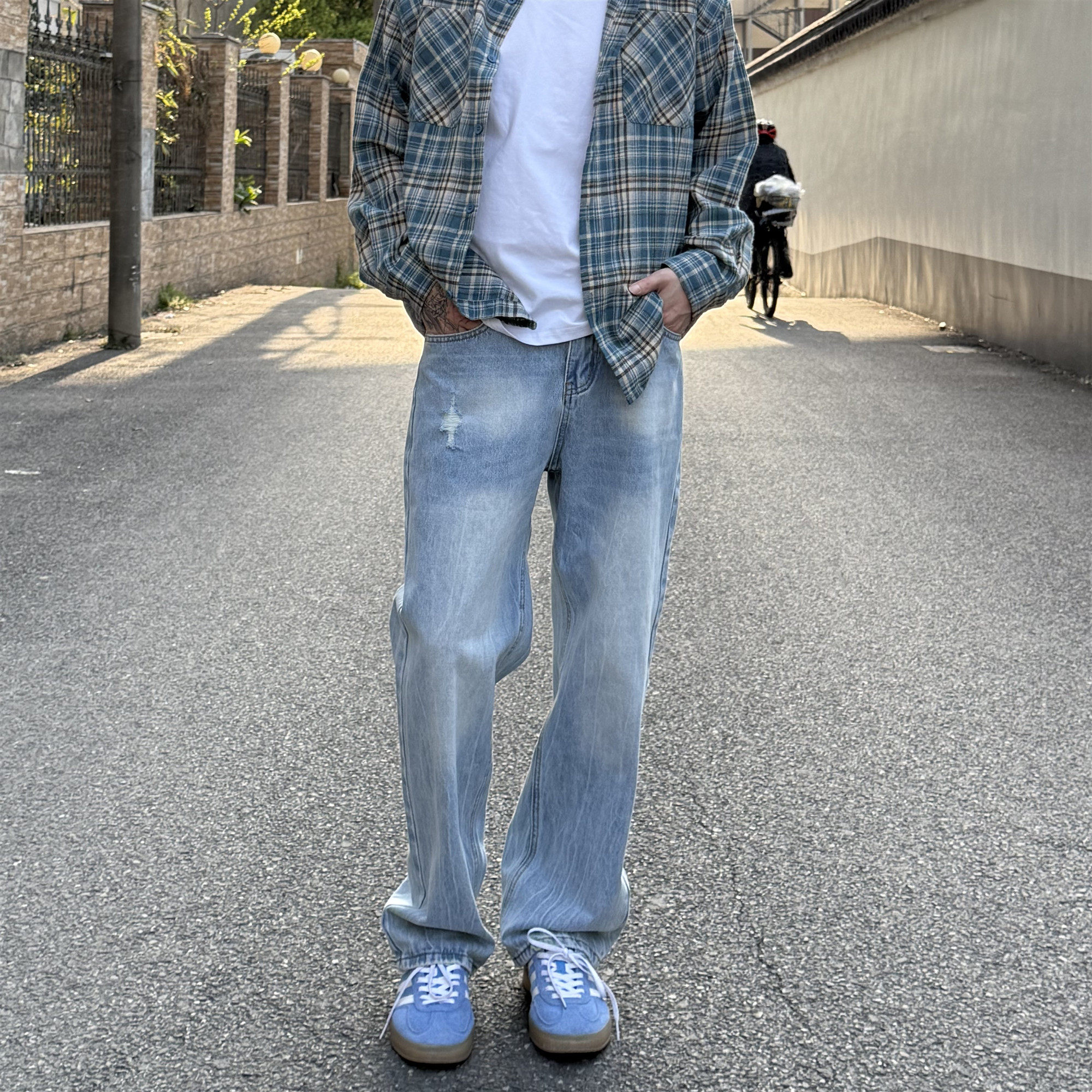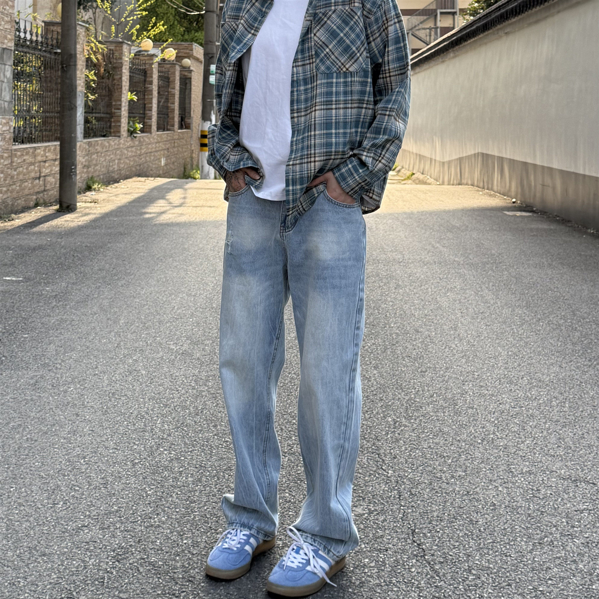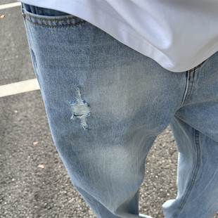 男cleanfit直筒磨破直筒休闲裤 闪电纹水洗蓝牛仔裤 2021M LEFT7