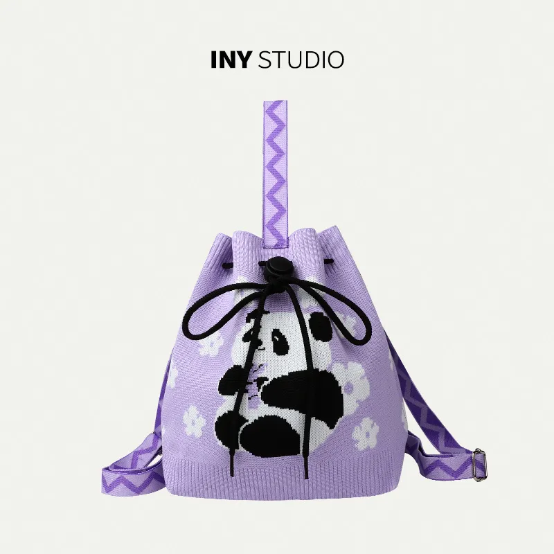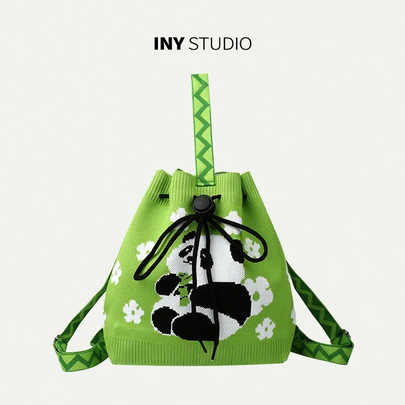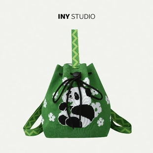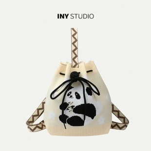 熊猫爷爷针织包包手提包大容量双肩背包书包