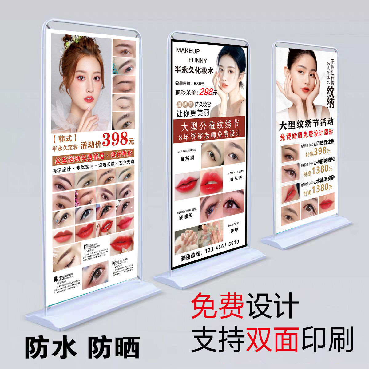 美容店开业周年庆纹绣海报定制眉眼唇门型展架挂画半永久广告设计