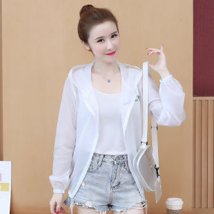 宽松连帽防晒衣女短款 防紫外线2022夏季 韩版 百搭长袖 薄外套女潮 装