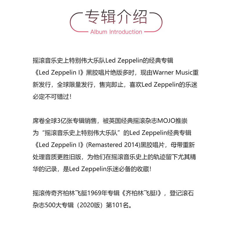 齐柏林飞艇 LP黑胶唱片 Led 摇滚音乐 齐柏林飞艇I Zeppelin 进口