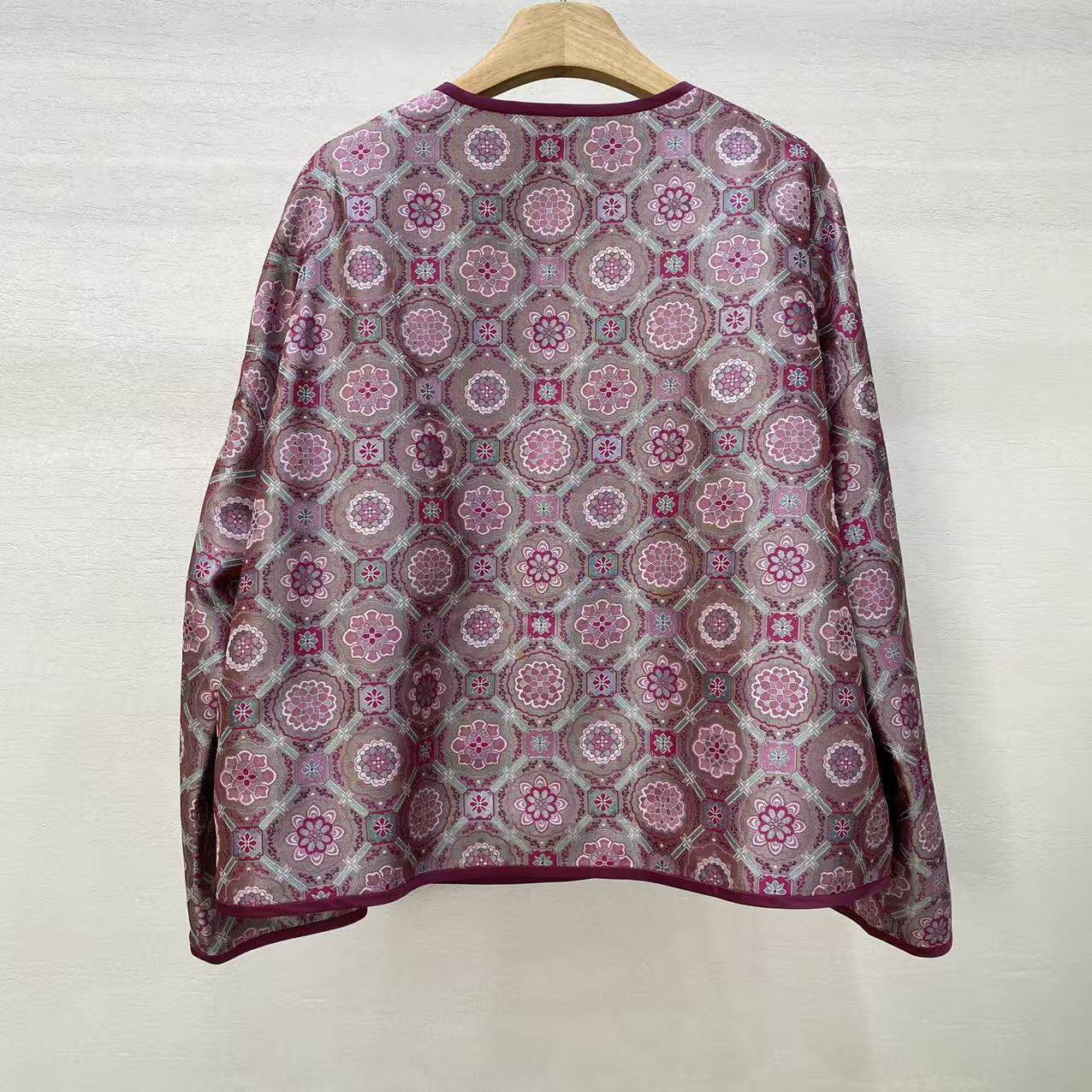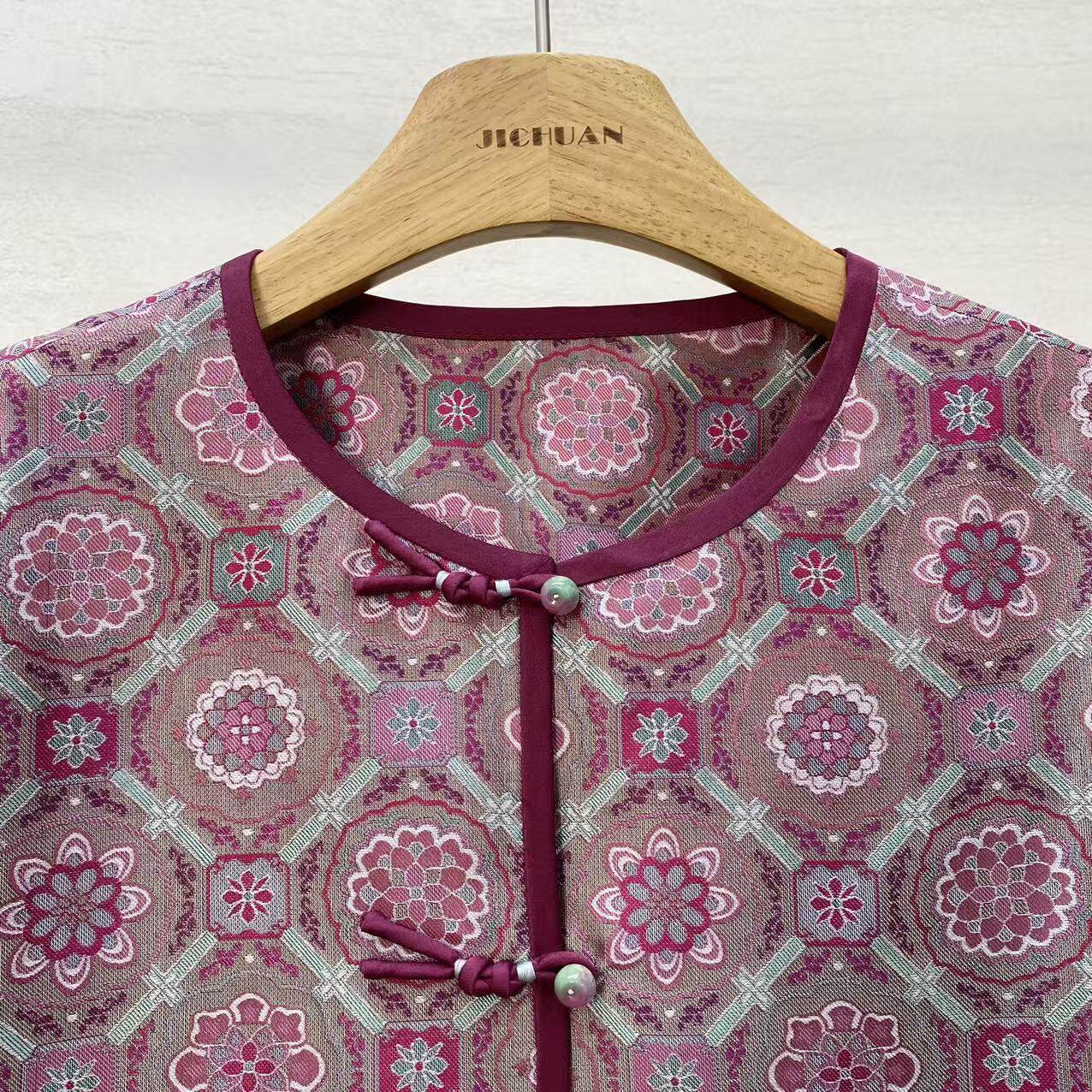 26气质优雅圆领盘扣蜀锦真丝提花丝棉里衬中式 上衣短外套 国风衬衫