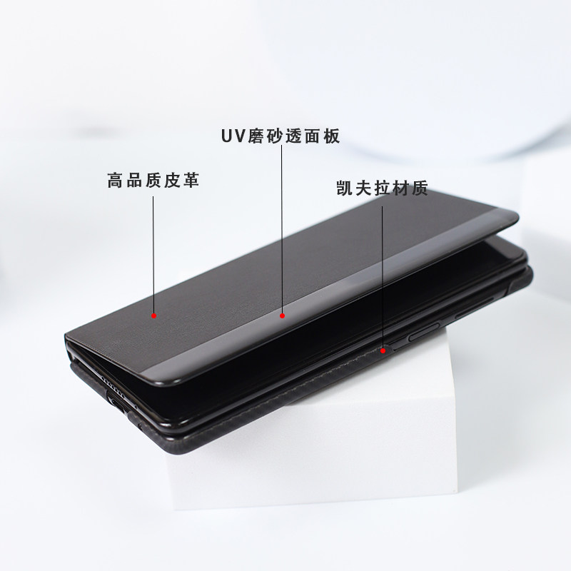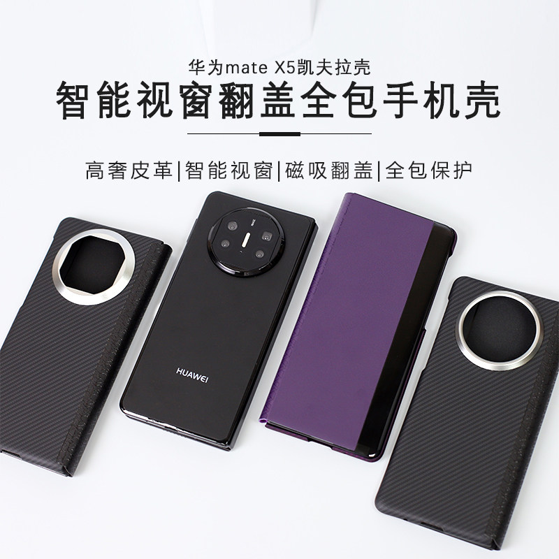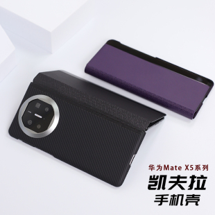 适用于华为 X5翻盖手机壳商务质感凯夫拉芳纶纤维壳智能休眠皮套磁吸硬壳 Mate