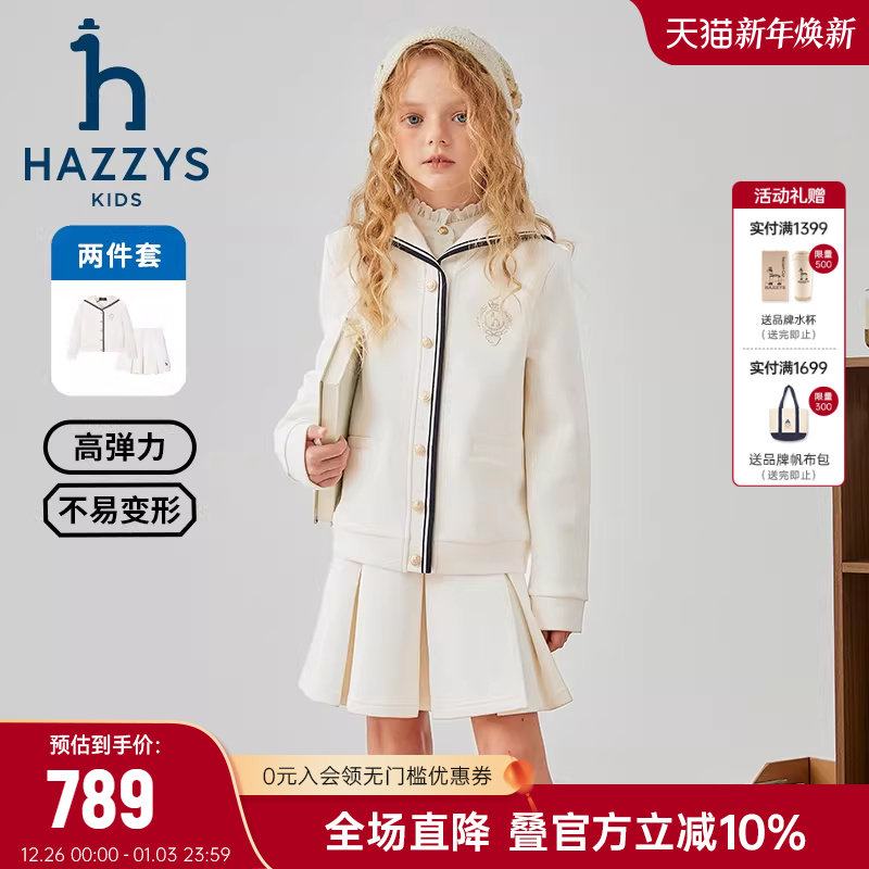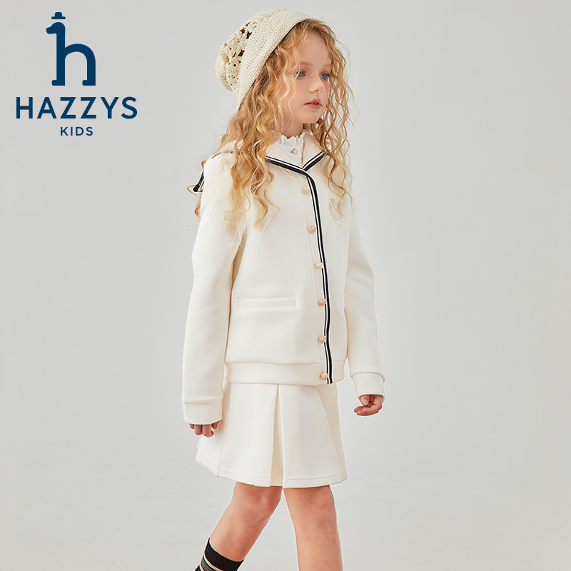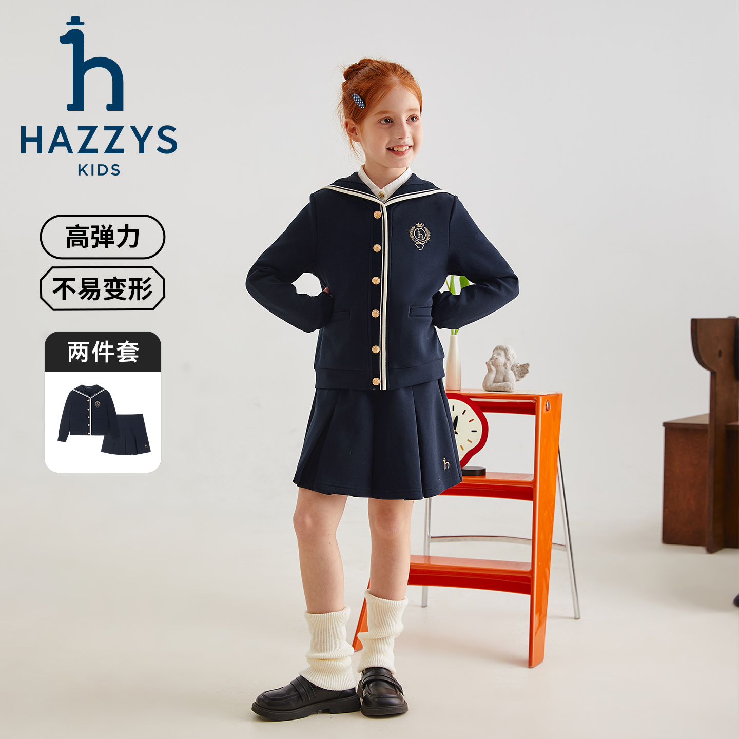 hazzys哈吉斯童装 半裙2件套 女童套裙2024秋新莱卡弹力海军领长袖