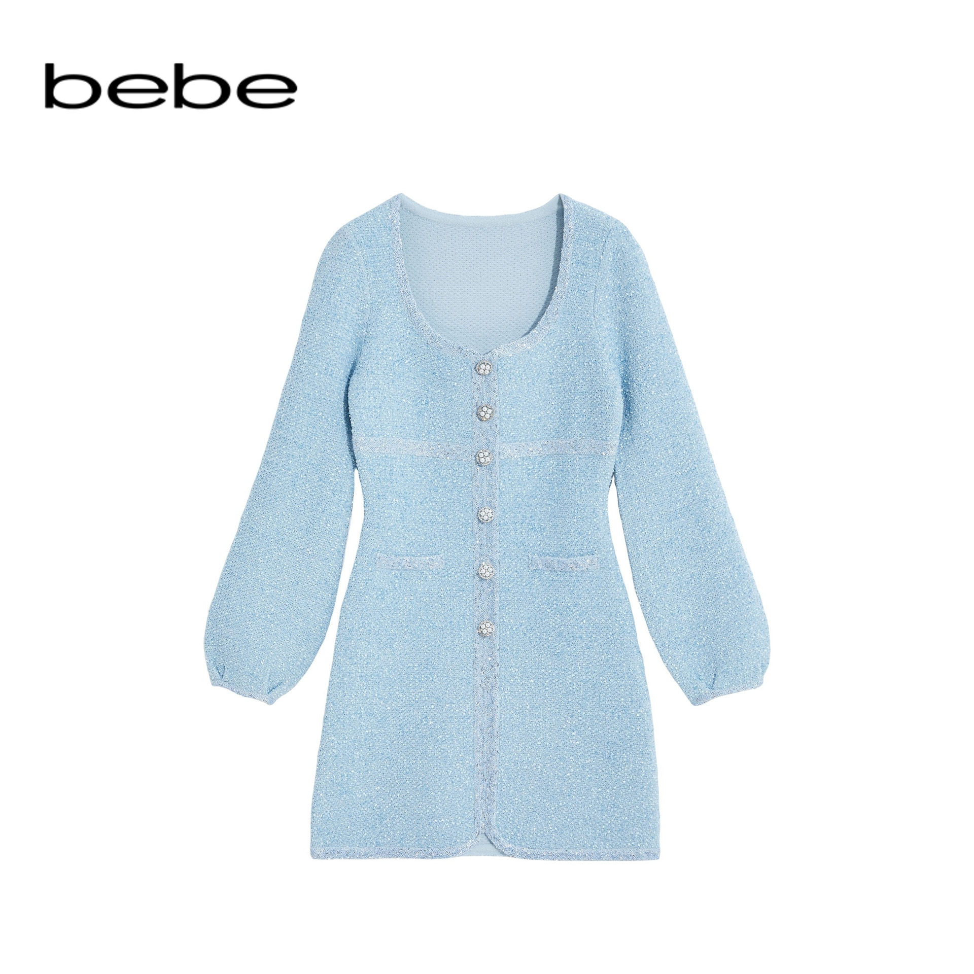 bebe冬季 系列女士珠片纱网纹波浪纱花纱针织连衣裙430914