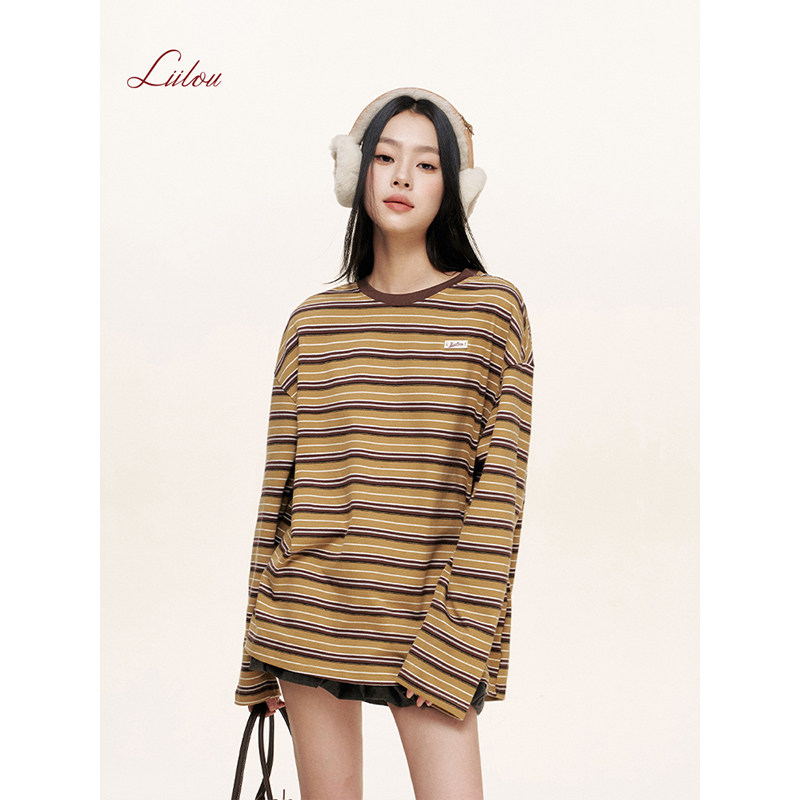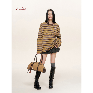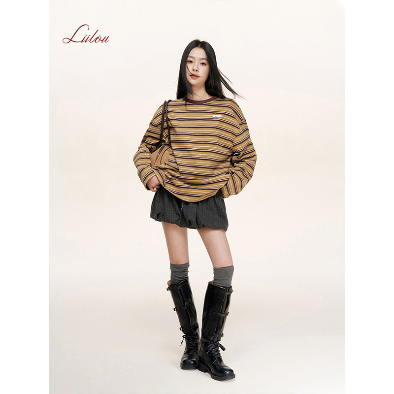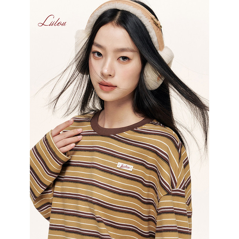 Liilou T恤云朵衫 Athflow 圆领套头宽松长袖 撞色条纹 薛凯琪同款