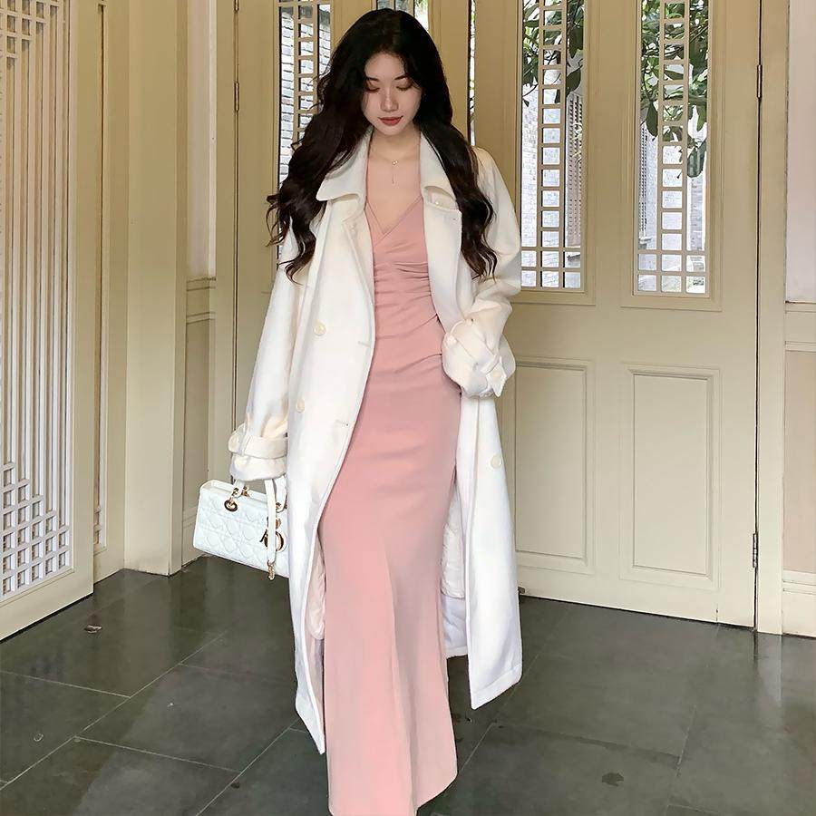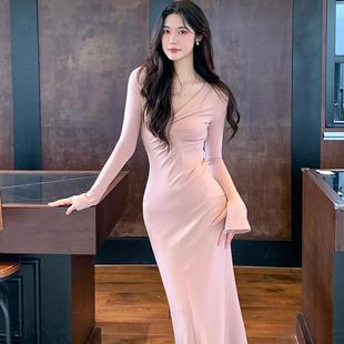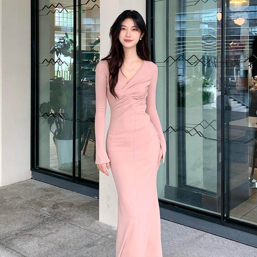 气质掐腰长袖 Norain不下雨 V领鱼尾长裙 现货5折清仓
