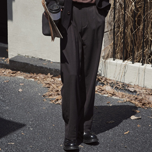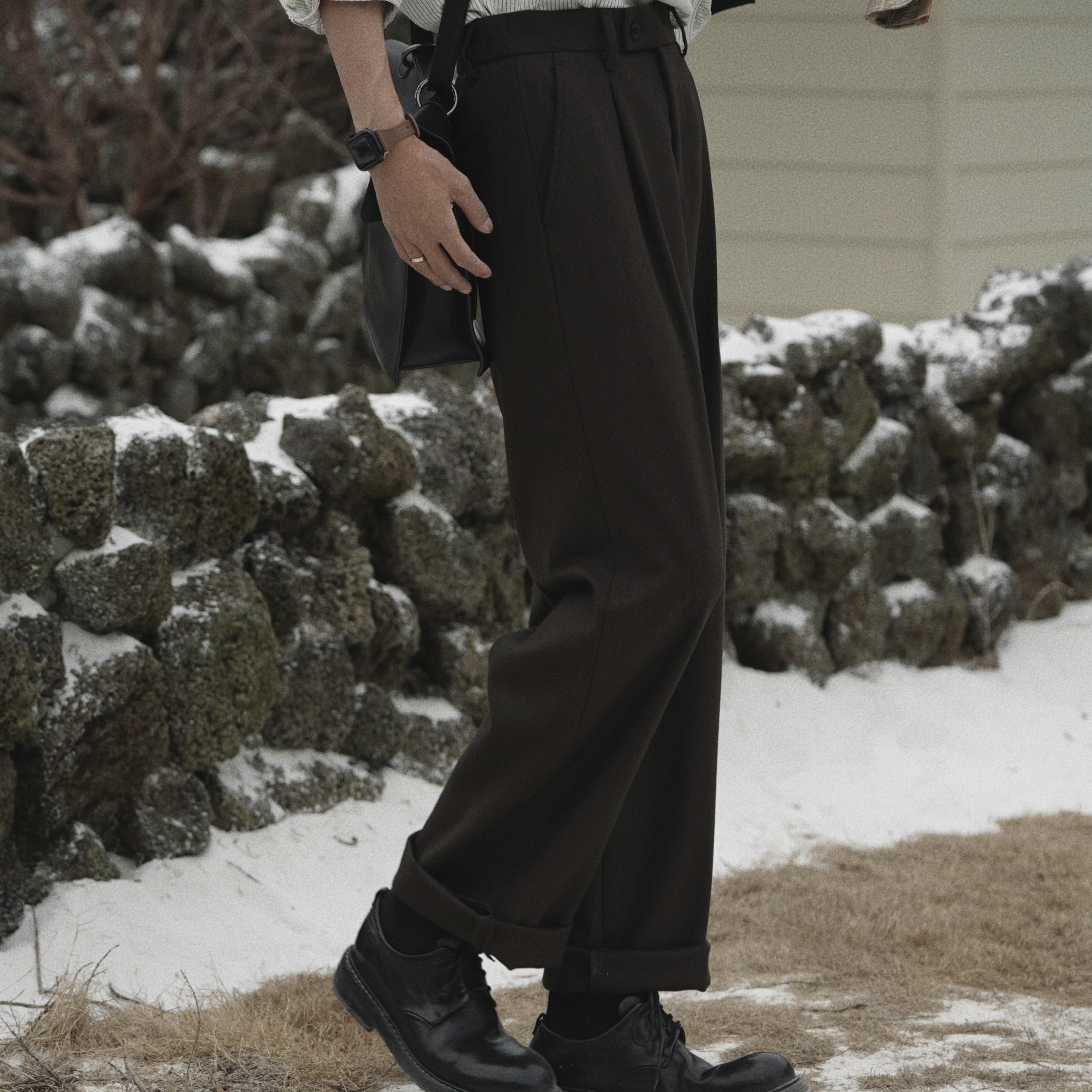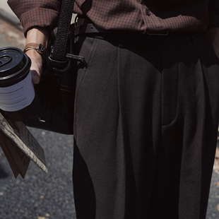 双纱混色抗皱磨毛复古松弛感休闲直筒厚西裤 Eli 维克黑沙滩