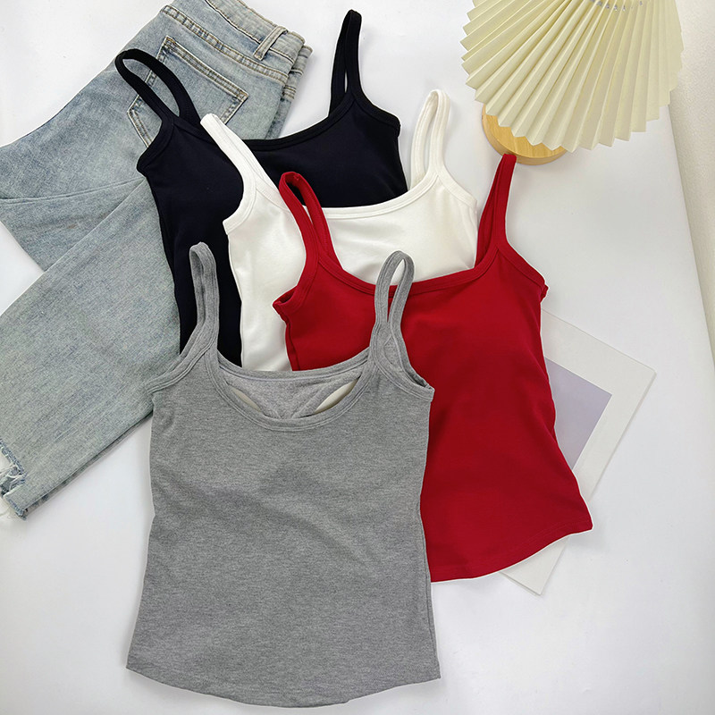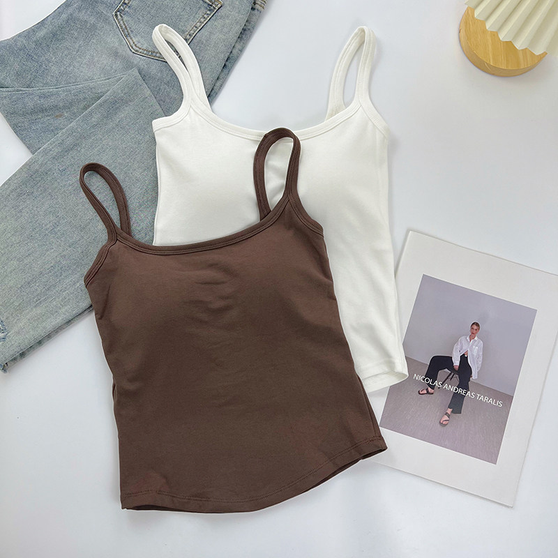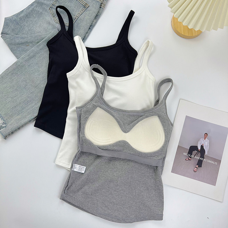 白色磨毛加绒加厚吊带背心女带胸垫一体内搭修身 秋冬打底美背上衣