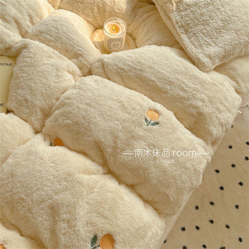 郁金香呀|ins奶油少女加厚泰迪绒四件套冬天米色珊瑚法莱绒1.8笠