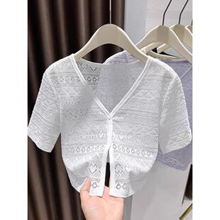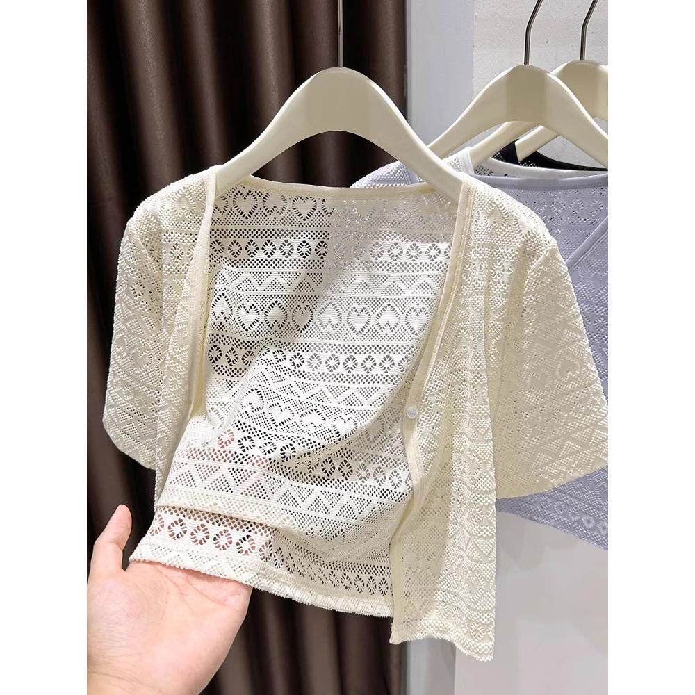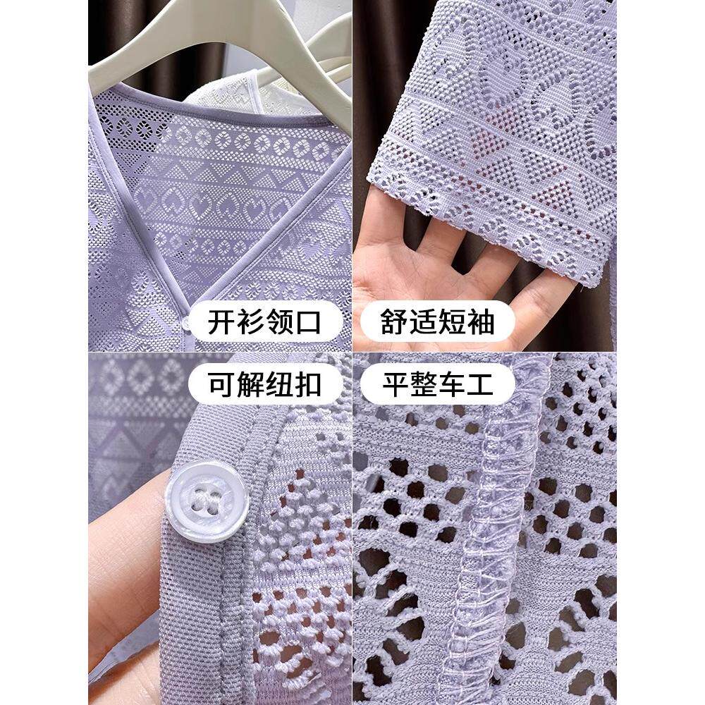 裙子外搭 防晒开衫 紫色爱心蕾丝短款 小披肩女夏日轻薄冰丝网纱短袖