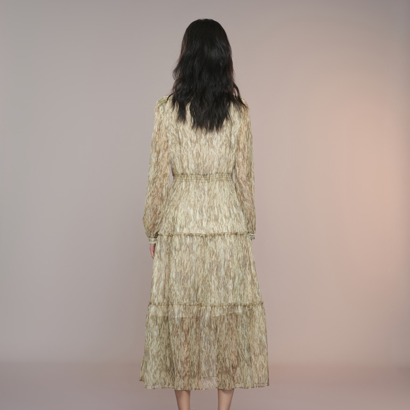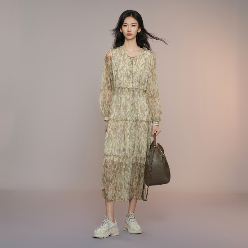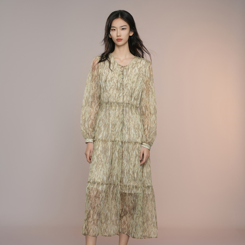 XG雪歌2025秋显瘦A版 飘逸碎花连衣裙XK304007B294 南法度假风长款