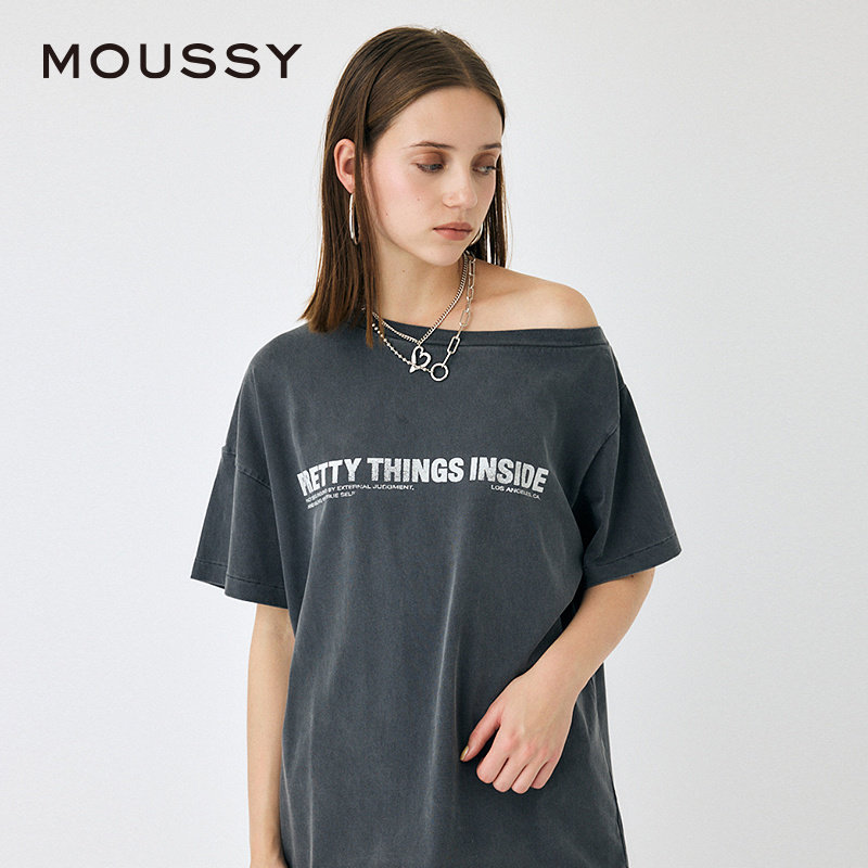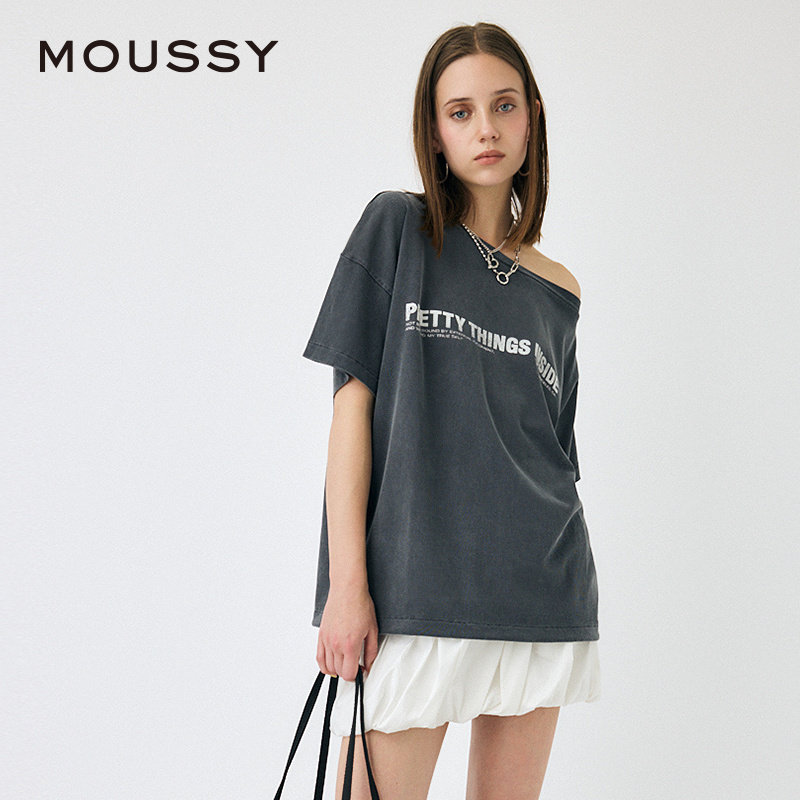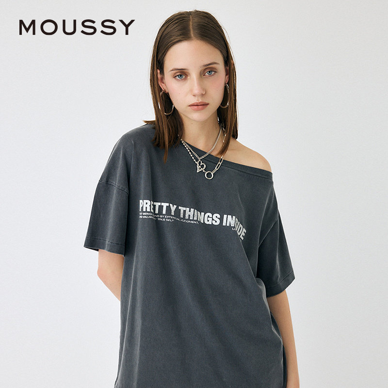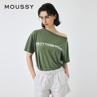 9331 T恤010IS290 MOUSSY早春新品 休闲通勤风字母斜肩宽松短袖