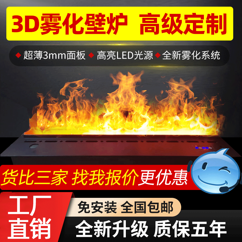 3D雾化壁炉仿真火焰嵌入式 电子壁炉取暖欧美电视柜智能家用加湿器