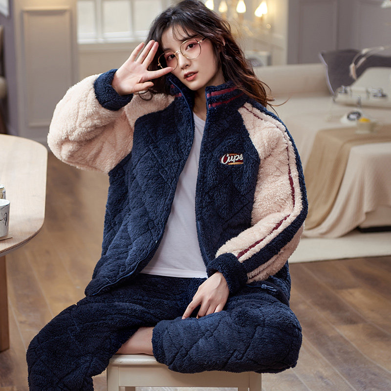法兰绒家居服套装 加绒加厚冬季 2025新款 浪莎珊瑚绒睡衣女士秋冬款