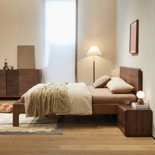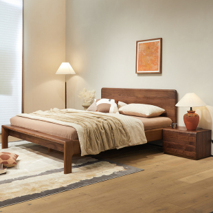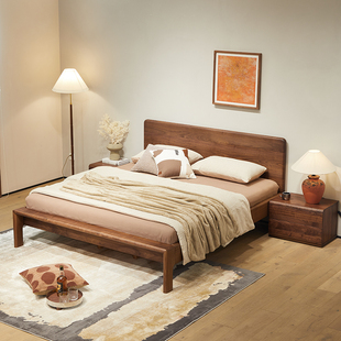 北美黑胡桃木床北欧实木床现代简约1.8米双人大床原木主卧床1.5m