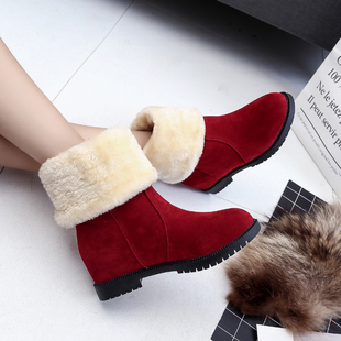 东北大棉鞋 冬季 女冬厚底加绒加厚 雪地靴女款 红色中筒短靴2025新款