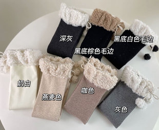 毛绒过膝袜子女秋冬款 长筒加绒加厚高筒保暖月子护膝大腿袜套冬季