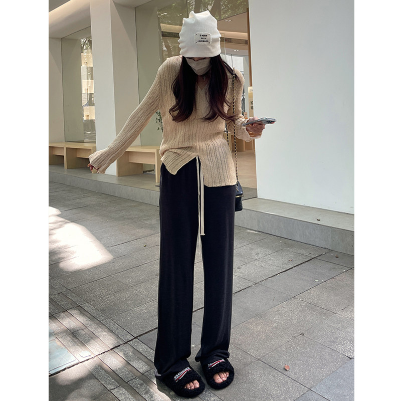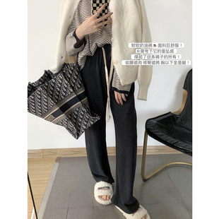孕妇德绒阔腿裤 2025春秋显瘦百搭休闲外穿黑灰色垂感直筒拖地长裤