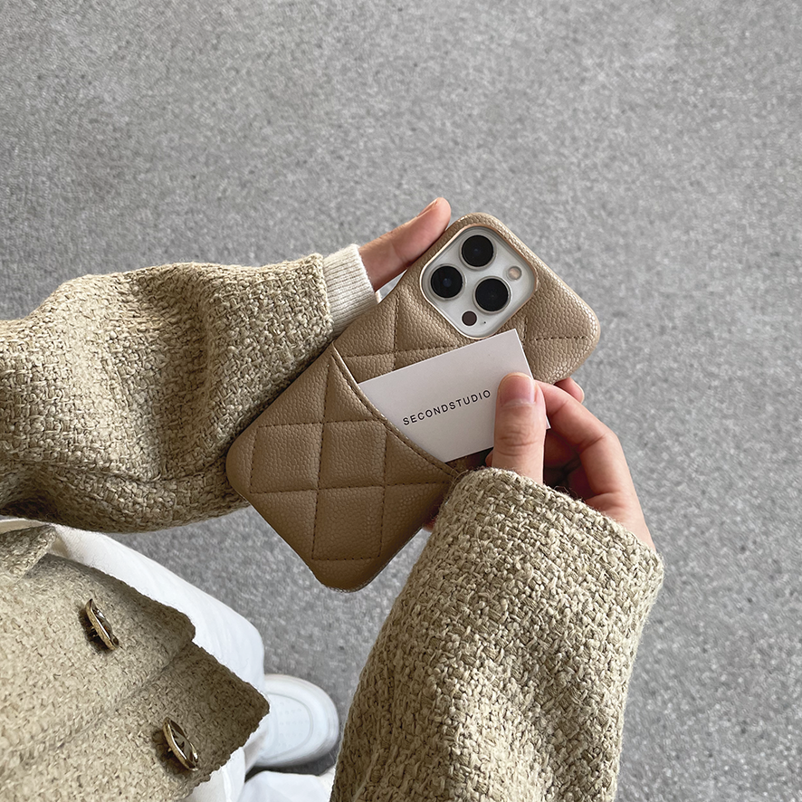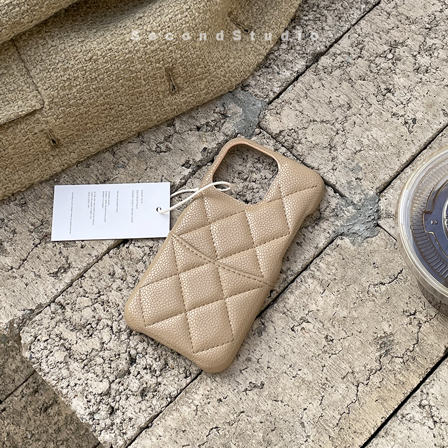 高级感小香风苹果15promax简约时尚 菱格皮质软壳iPhone14pro手机壳13 13经典