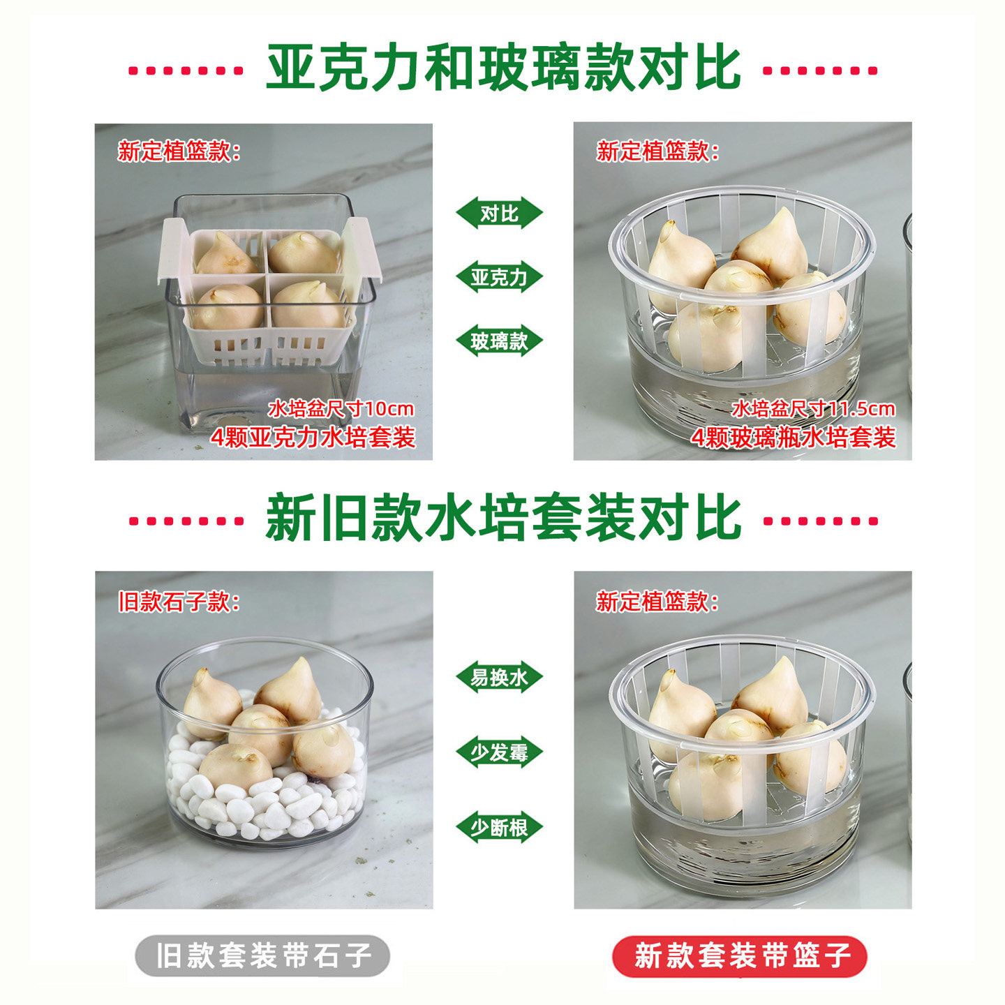 盆栽花卉 圆玻璃瓶定植篮水养种球四季 利尤新款 4颗郁金香水培套装