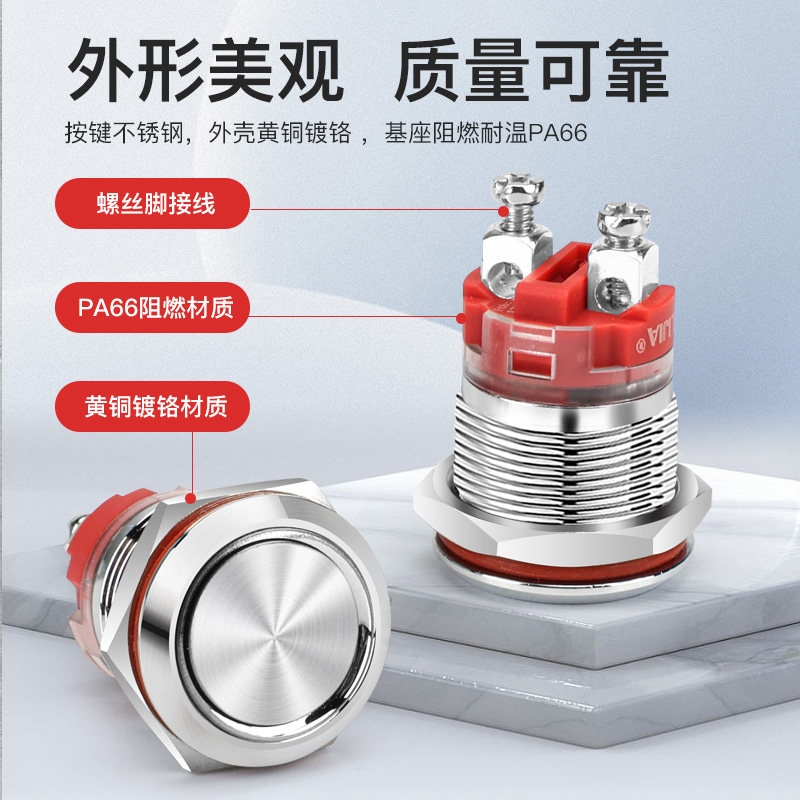 大电流金属按钮防水大功率16 20A 22mm自复位自锁汽车按键开关改装