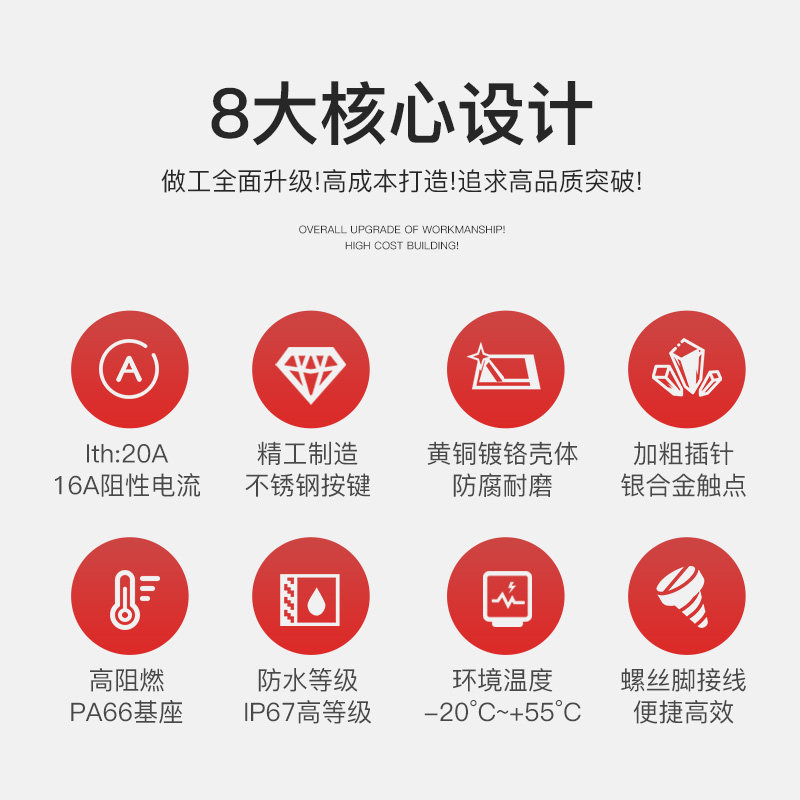 电锅开关6000W大功率带灯按钮电热锅电炒锅多用配件通用型加厚