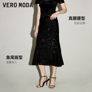 vq区绫致Vero Moda半裙春夏复古时髦A字亮片高腰短裙女时尚
