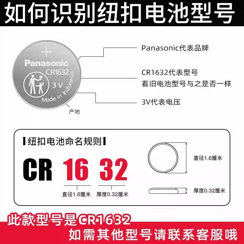 松下CR1632纽扣电池相机测光表3V电瓶车电子秤钥匙通用遥控器