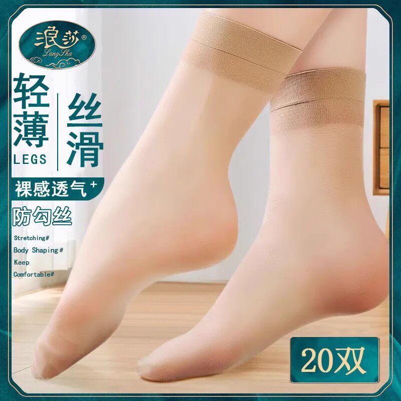 浪莎丝袜女短薄款 水晶丝纯色防勾耐磨肉色隐形加固袜子女短袜 夏季