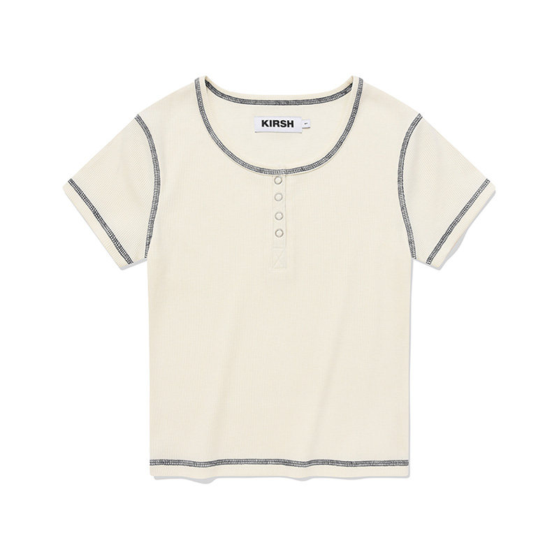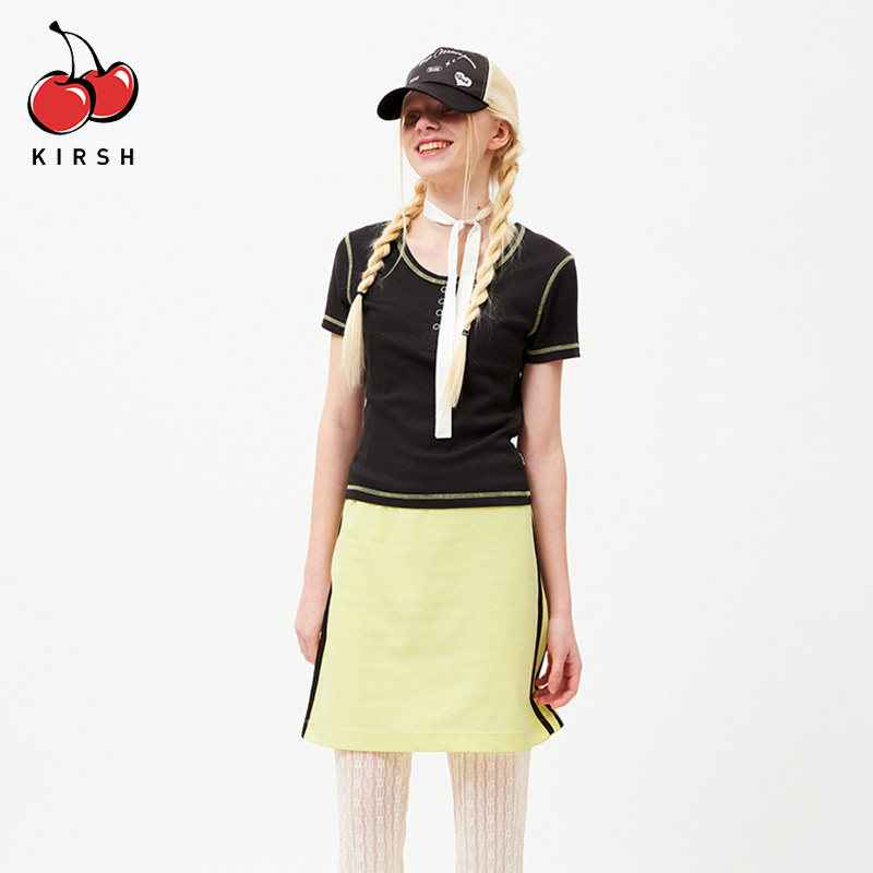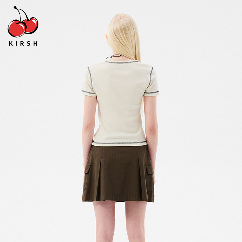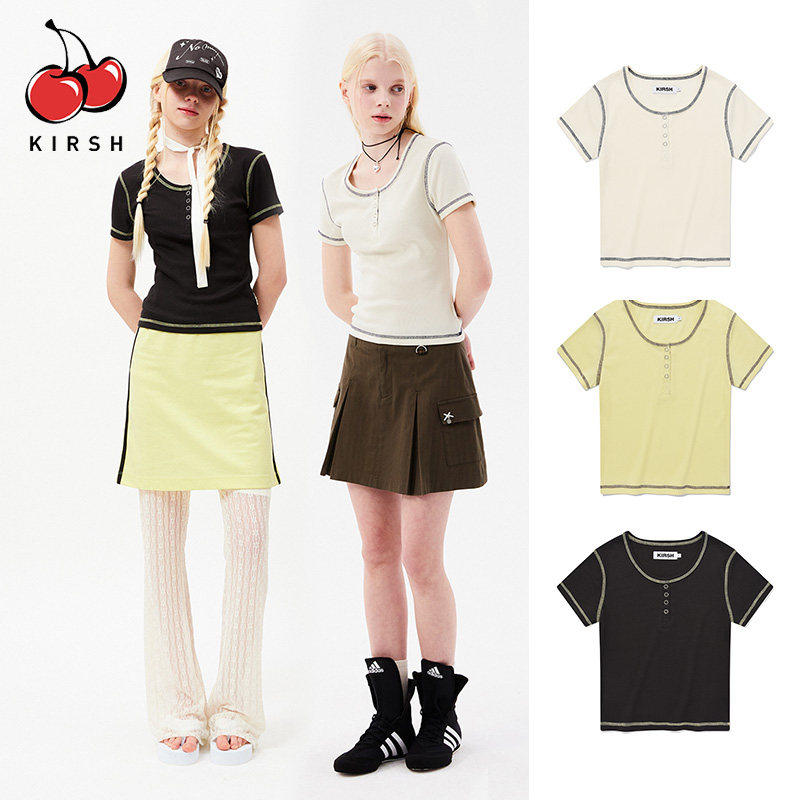 u领半开襟短袖 显瘦少女短款 T恤女夏季 修身 上衣夏 韩版 樱桃KIRSH