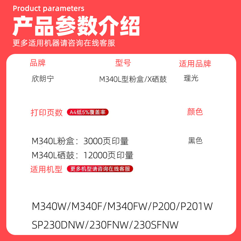 M340W P200 M340FW 230FNW P201W硒鼓 SP230DNW 适用理光340W粉盒