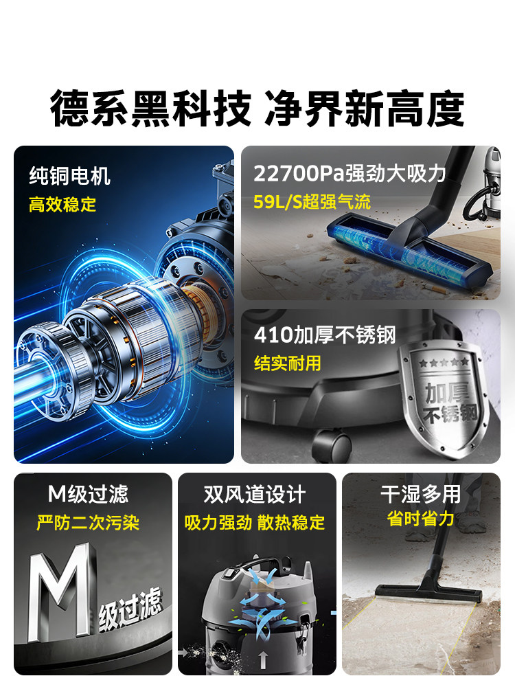 德国卡赫吸尘器大吸力家用商用大功率车用装 修强力工业吸水NT20