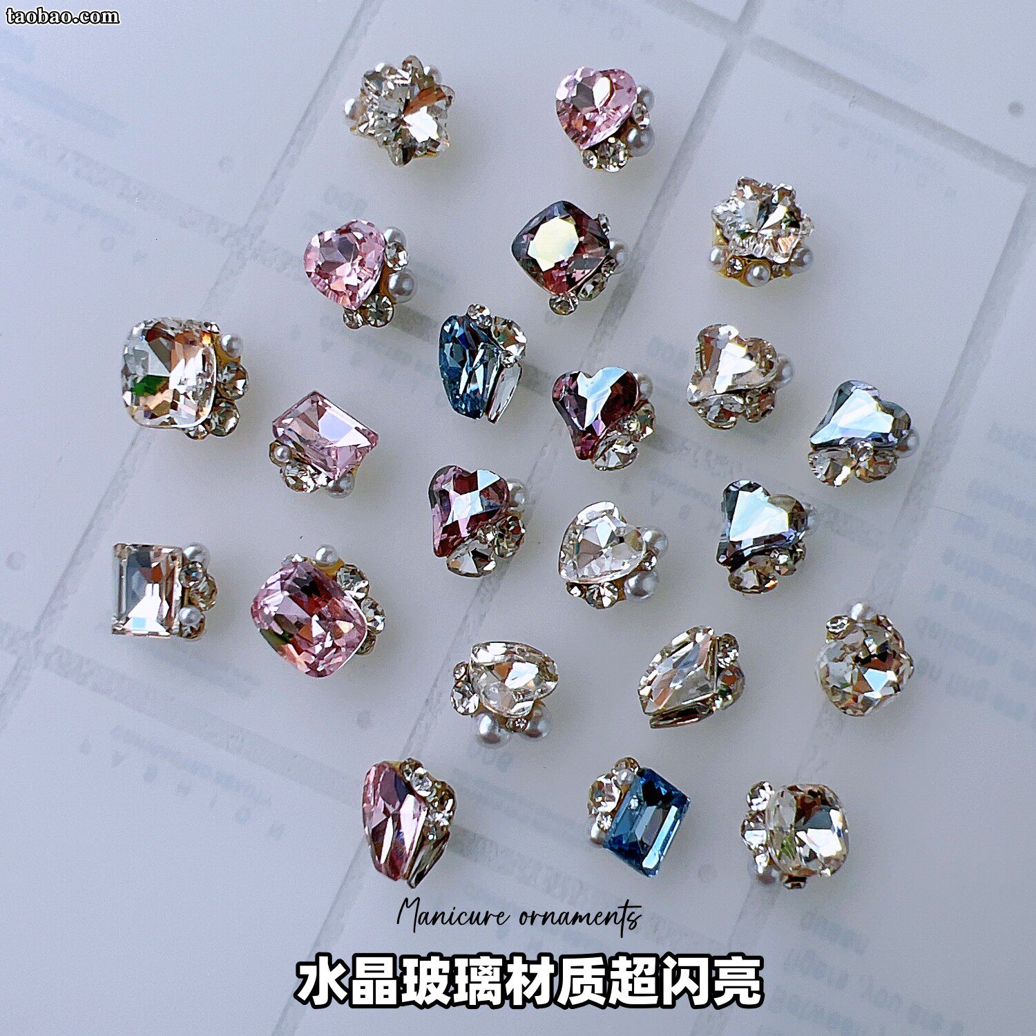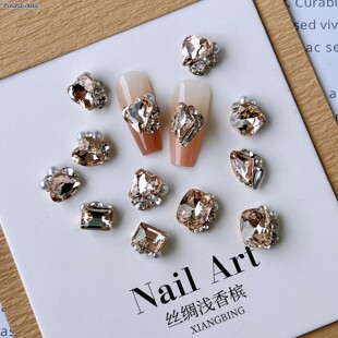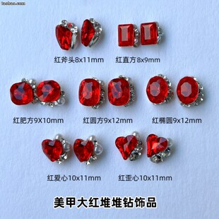 美甲奢华堆钻肥方斧头歪桃心雪花钻石指甲超闪美拉德堆堆水钻饰品