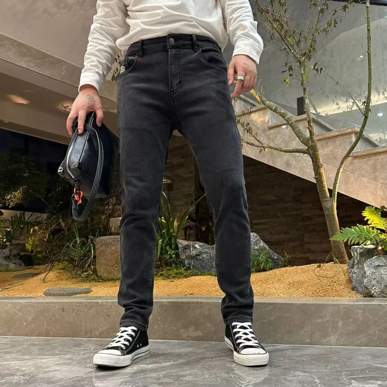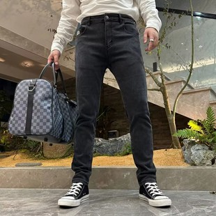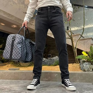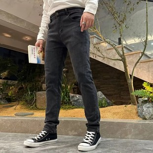 新款 小脚秋冬季 韩版 潮流修身 高级感黑灰色牛仔裤 百搭休闲裤 男修身