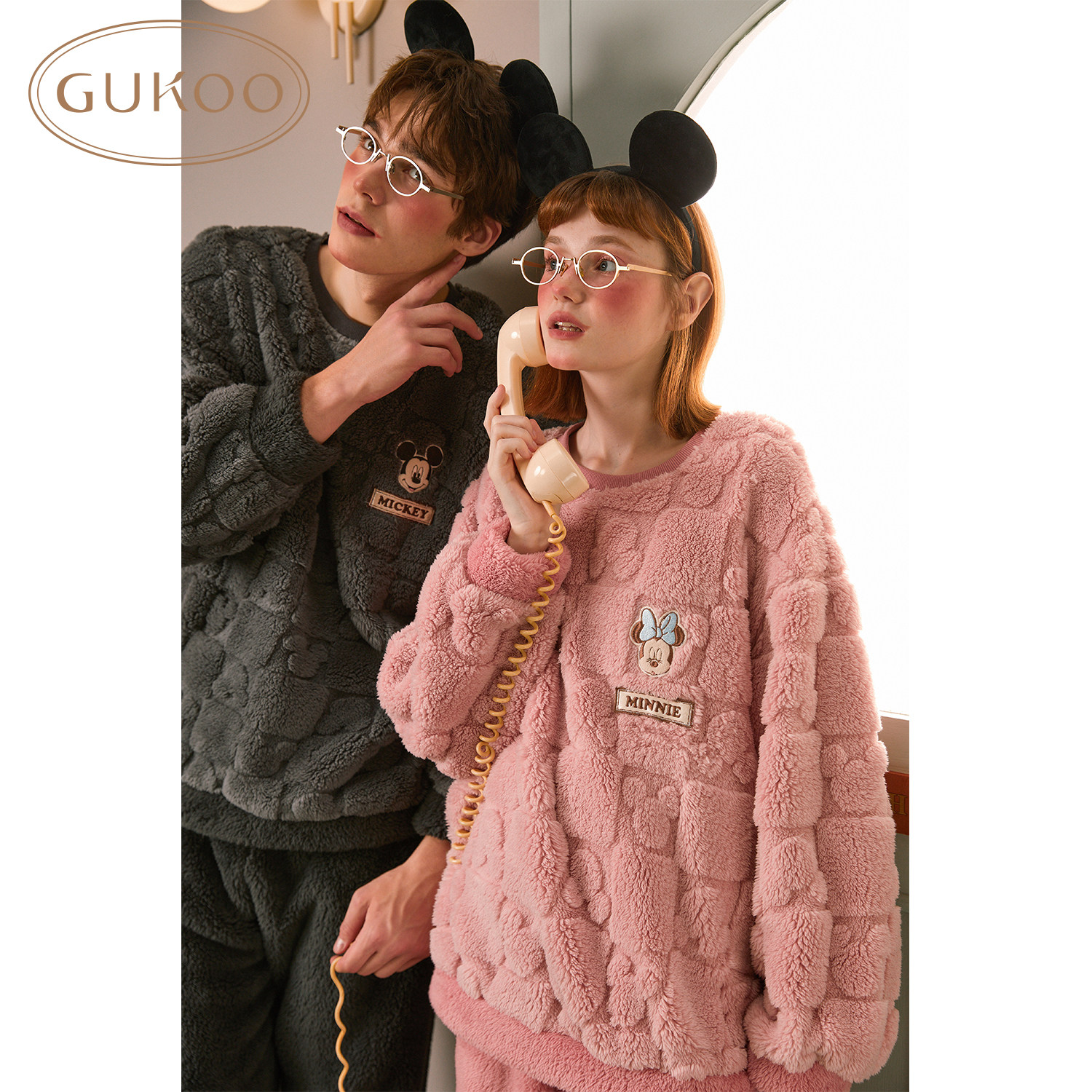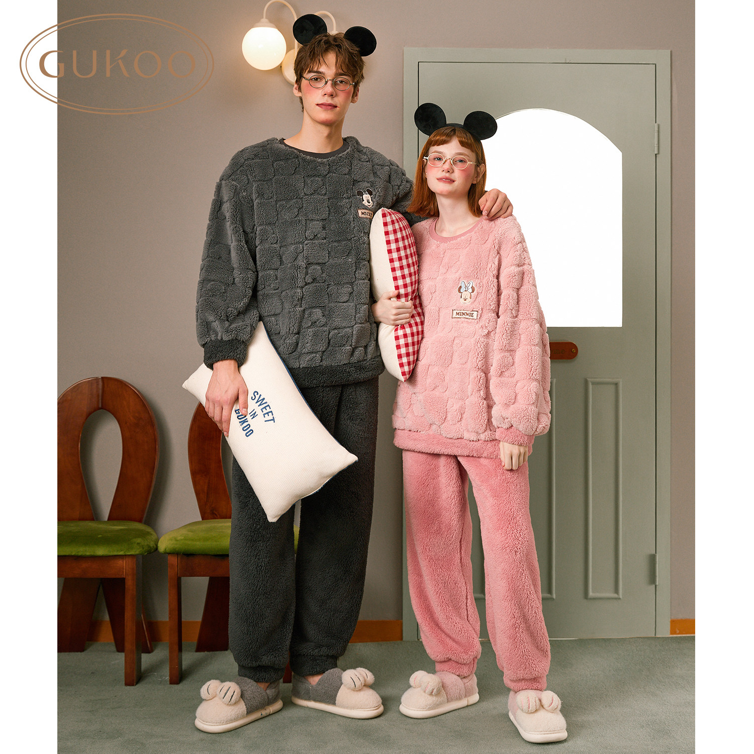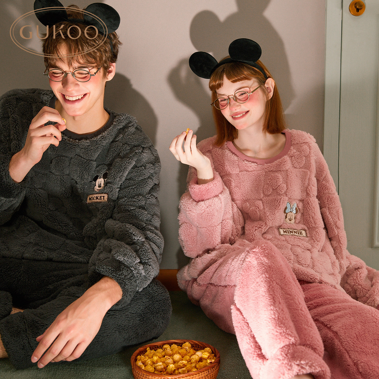 睡衣男家居服套装 米奇舒棉绒薄款 迪士尼新款 果壳情侣睡衣女冬季