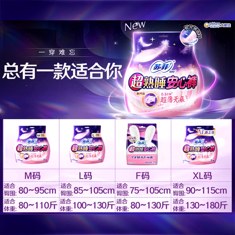 量大夜用 现货超薄瞬吸防漏安心裤 苏菲卫生巾超熟睡安睡裤 12条全码