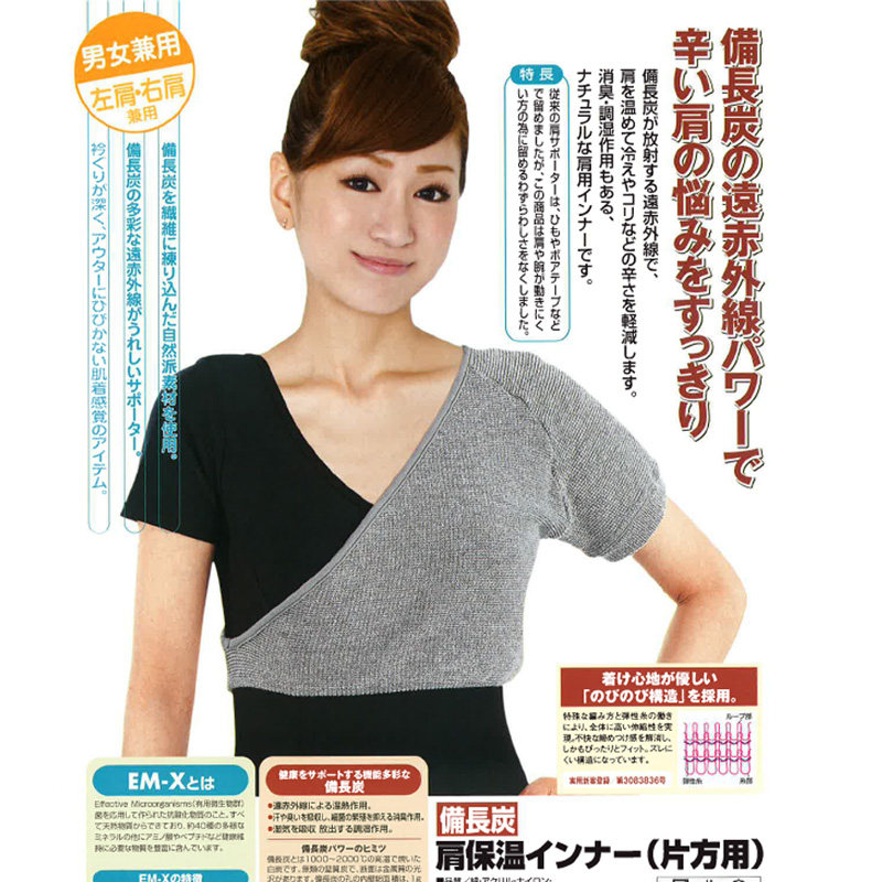 日本threeruners备长炭自发热远红外护肩肩周防寒保暖薄款 大弹力
