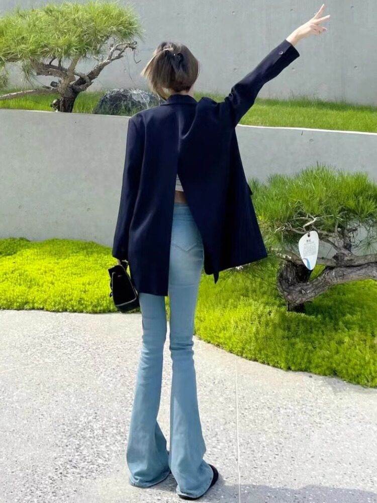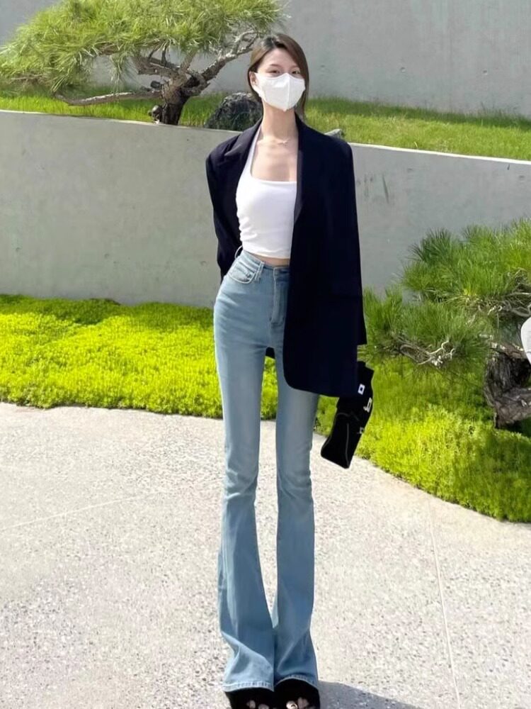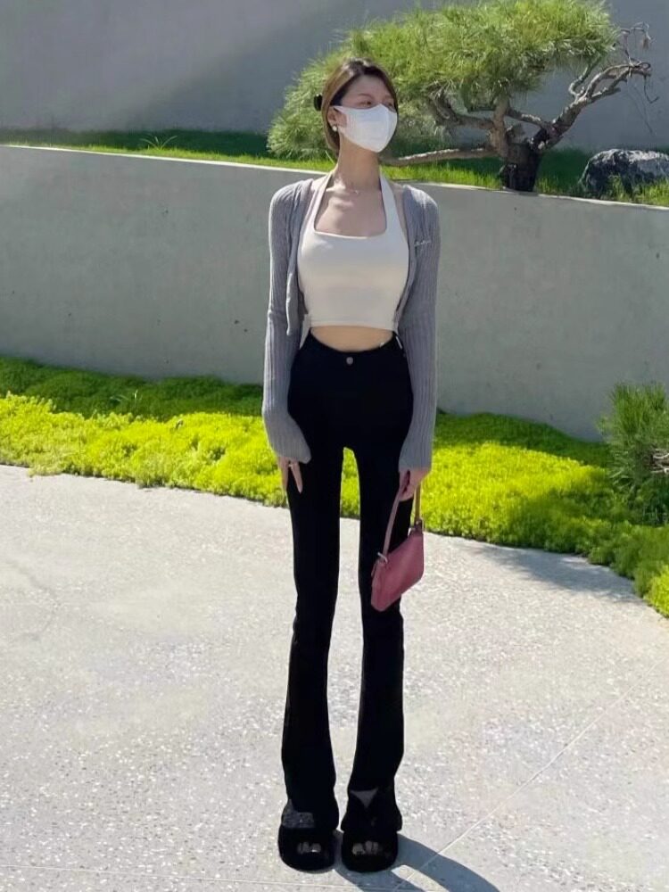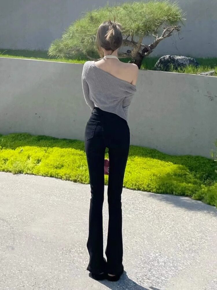 小个子马蹄裤 高腰显瘦梨型大码 女2023年春秋新款 黑色微喇叭牛仔裤
