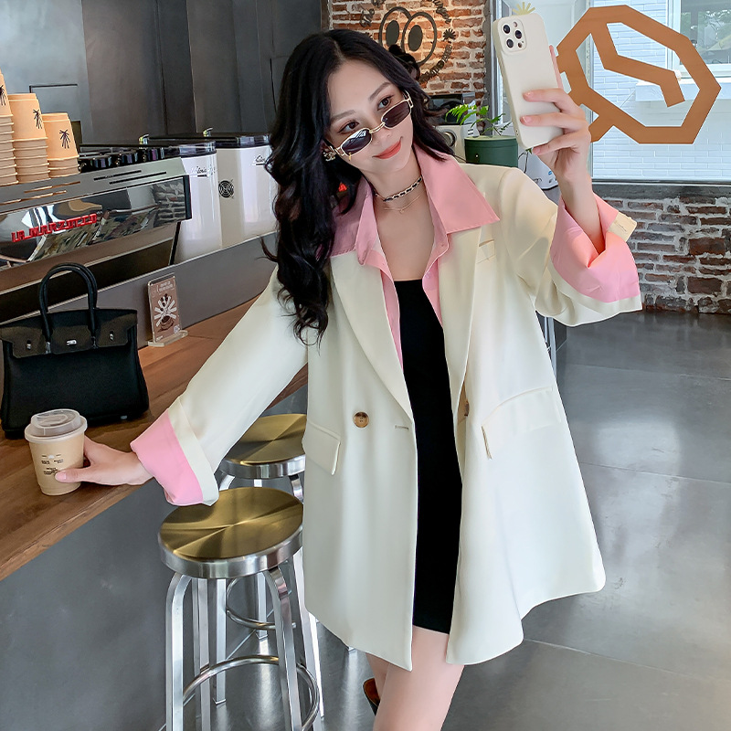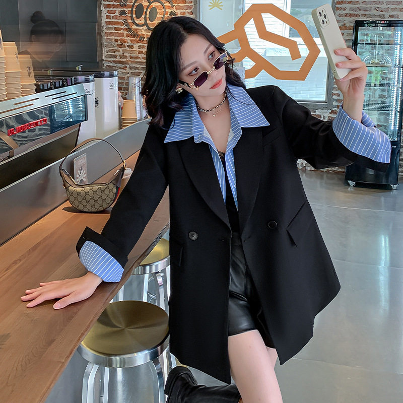 新款 胖mm2025秋季 休闲假两件西装 外套韩版 宽松西服 大码 中长款 女装