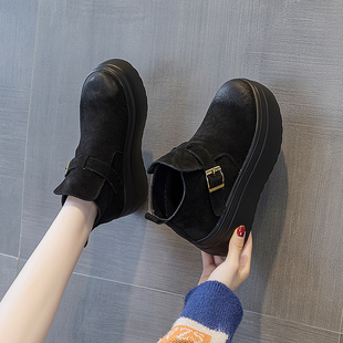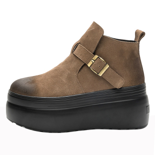 磨砂牛皮厚底马丁靴女增高8cm秋冬擦色小皮靴子高帮加绒松糕短靴