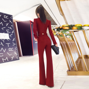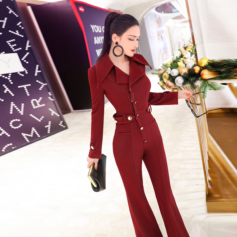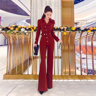 女神范连身裤 VJE时尚 女新款 收腰连体裤 气质大翻领设计感工装