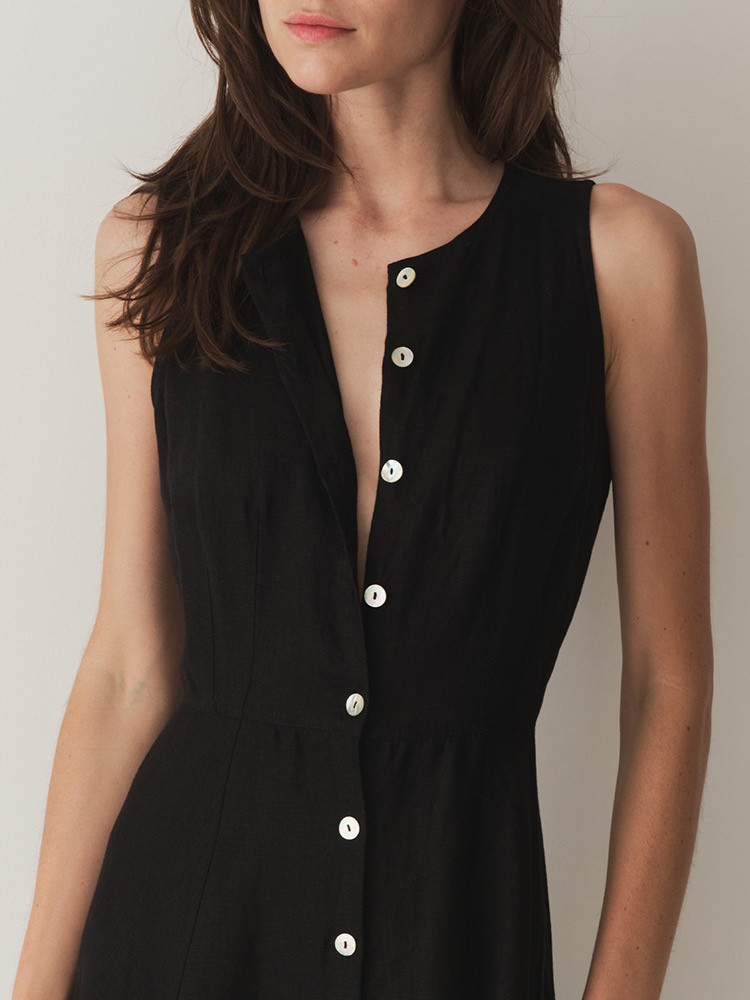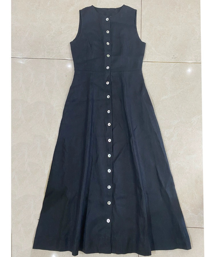衬衫 气质黑色亚麻无袖 连衣裙子女高级感背心度假长裙 DOEN法式 秋季